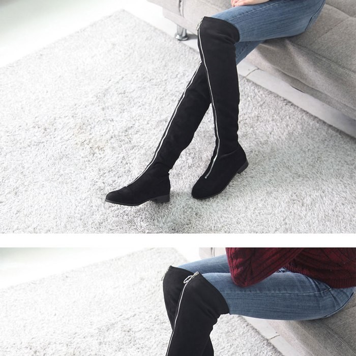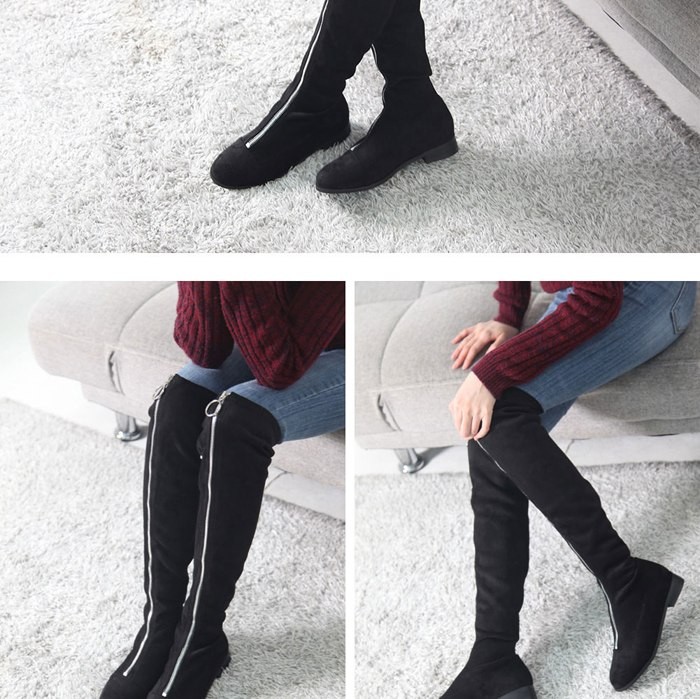 商品名:ロングブーツ レディース ニーハイブーツ ローヒール ペタンコ スエード調 2017 秋冬 ファッション 靴 婦人靴