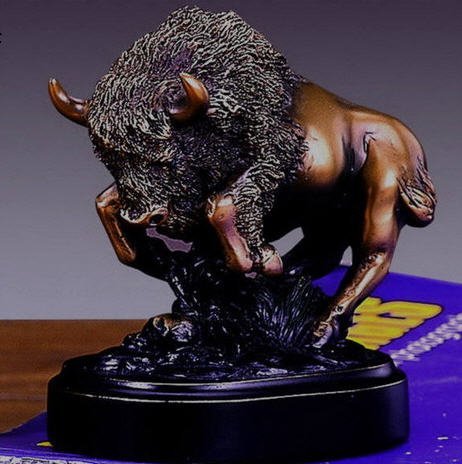 Bronze Plated Resin Charging Buffalo/ Bison Sculpture Wild Animal Statue with Base 3" Wide X 3.5" High