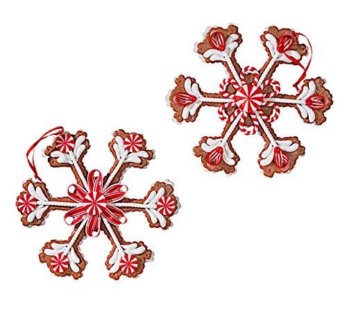 Christmas Holiday Decorations 8" Gingerbread Snowflake Ornaments by RAZ (Set of 2)