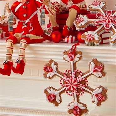 CHRISTMAS HOLIDAY ORNAMENTS: Set of 2 Christmas Holiday decorations made by RAZ Imports featuring 8" Gingerbread Snowflake Ornaments.