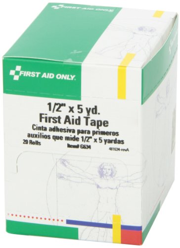 -. Binding : Health and Beauty -. Brand : First Aid Only -. EAN : 0092265076340 -. Feature : Manufacturer: First Aid Only / Part Number: G634 / First Aid Tape, 1/2" x 5 yds, 20 Rolls/Box -. IsAutographed : 0 -. IsMemorabilia : 0 -. Label : First Aid Only -. Manufacturer : First Aid Only -. Model : G634 -. MPN : G634 -. NumberOfItems : 1 -. PackageQuantity : 1 -. PartNumber : G634 -. ProductGroup : BISS -. ProductTypeName : HEALTH_PERSONAL_CARE -. Publisher : First Aid Only -. ReleaseDate : 2007-11-09 -. Studio : First Aid Only -. Title : First Aid Only 1/2" X 5 Yd. First Aid Tape Roll, 20-Count Boxes -. UPC : 092265076340