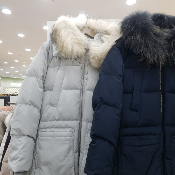 퍼지퍼 다운패딩이예요옆지퍼가있구요 일자루즈핏이라 기장감도 마니안길어서 활동하실때편해요 가볍고따뜻해요 마네킹착용컬러는 네이비구요 민트컬러는 살짝 스카이블루쪽과 가까워요 사진컬러랑다를수있어요