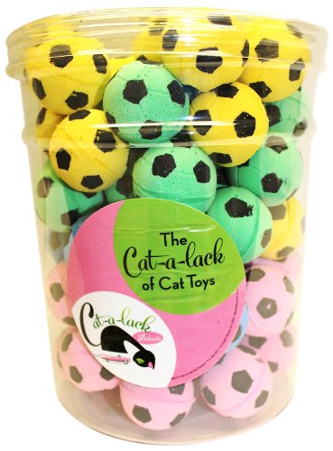 -. Binding : Misc. -. Brand : Cat-A-Lack -. EAN : 0700220039384 -. Feature : Colorful design stimulates cats to add excitement to playtime / Light weight design / SP.R.Ing back into shape when crushed / So light they fly up in the air when being batted or kicked / Soccer balls come in 72 pc jar -. Label : Coast 2 Coast Pet -. Manufacturer : Coast 2 Coast Pet -. Model : CA03938 -. MPN : CA03938 -. PackageQuantity : 1 -. PartNumber : CA03938 -. ProductGroup : Pet Products -. ProductTypeName : PET_SUPPLIES -. Publisher : Coast 2 Coast Pet -. Studio : Coast 2 Coast Pet -. Title : Cat-A-Lack 72-Piece Soccer Balls in Jar for Pets -. UPC : 700220039384