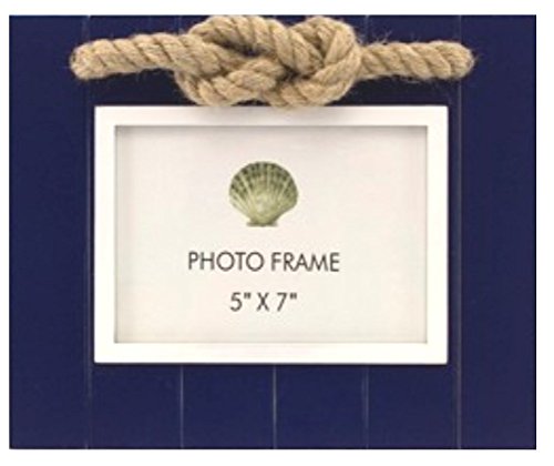 Navy Wood Slat 5 Inch X 7 Inch Photo Frame with Rope Knot