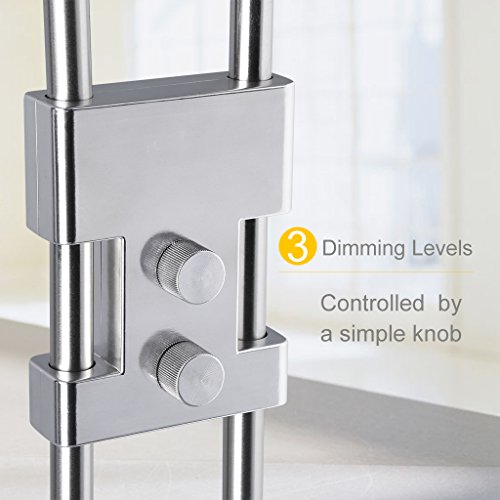 - 3 BRIGHTNESS LEVEL: 2 separate rotary switches for two lamps. The taller one allow you to turn on/off and dimmable to find the perfect light setting for your needs. A softer modern lighting equipped with 84 energy-efficient LED chips may also be good for one’s eyes, as it will help it defocus and relax