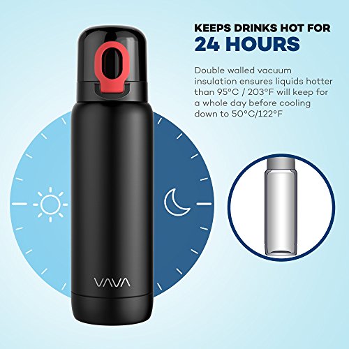 Studio : VAVA Publisher : VAVA Product Description Keep your drinks hot for longer with the VAVA VA-HP011 Vacuum Insulated Stainless Steel Water Bottle . Using a double walled vacuum insulation that acts as a barrier so outside temperature cannot affect the inside, liquids that are hotter than 95°C / 203°F will maintain their temperature for 24 hours. Even after a day has passed, liquids will keep at 50°C / 122°F so you can still enjoy a warm drink.