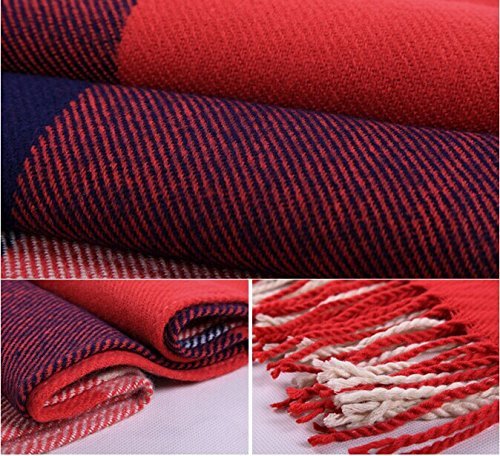 Title : Wander Agio Women's Fashion Long Shawl Big Grid Winter Warm Lattice Large Scarf Red Winter
