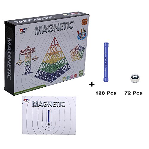 -. Feature : ★PACKAGE INCLUDE 200 PIECES - This WITKA Magnetic building set include 128 pieces of magnetic plastic bars(length: 2.3 inches) and 72 pieces of non-magnetic steel balls(Diameter: 0.5 inches). / ★SAFE MATERIALS & TOP QUALITY - All WITKA products are made of safe and top materials. We only make outstanding products instead of good products. / ★MAKE COUNTLESS DESGIN & MODELS - WITKA Magnetic building blocks can make countless designs and shapes. Some shapes may need more bars and balls, you can buy several sets of this one. / ★GREAT STEM TOYS FOR KIDS - It can help kids to learn color, counting and flat or geometric modeling construction. At the same time, enhance the child's sense of accomplishment. Just let imagination run wild! / ★WARNING & GUARANTEE - The non-magnetic steel ball is a little small, so the recommended age for playing this product is 6 years old and up. We provide 30 days no questions asked money back guarantee.