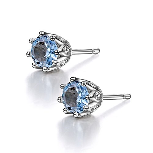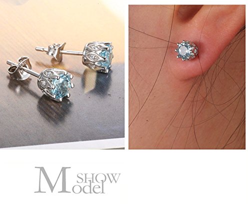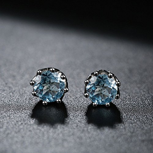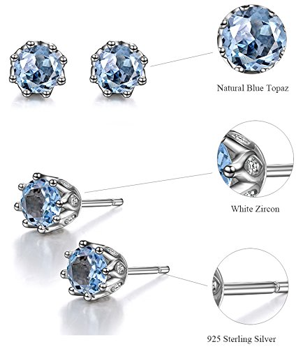 CROWN DESIGN: Fashion and Classic little crown design, one 5.5 mm natural blue topaz with the 8 Pcs perfect zircon, make this 925 sterling silver stud earrings sparkling!