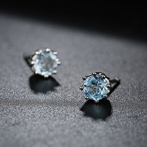 High quality materials This sterling silver stud earring is made of one 5.5 mm natural blue topaz & 8 Pcs perfect zircon with exquisite workmanship.
