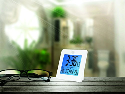 MARATHON CL030050WH Digital Desktop Clock with Day, Date, Temperature, Alarm and Backlight. White - Batteries Included