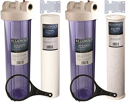 Two 20" Big Blue Whole House Water Filters w/ Sediment & Carbon with CLEAR BLUE TRANSPARENT HOUSINGS
