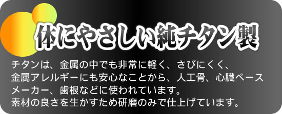 材質純チタン、ラジウム鉱石配合樹脂、ホルンα(製造特許)樹脂
