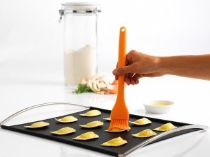 Studio : Orka Publisher : Orka Product Description Spread, coat, and baste your foods for a superior taste using Orka's flexible basting brush. Designed for utility and durability, the handle and the head are made from a resilient silicone. This silicone is heat resistant up to 575A°F, and is sturdy enough to thoroughly coat, yet flexible enough to bend around contours and edges. It is perfect for sauces, egg yolks, butter, and more. 16" L 0
