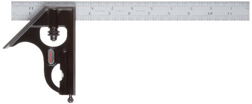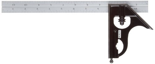 Starrett C33H-12-4RW/SLC Forged, Hardened Steel Square Head With Satin Chrome Blade Combination Square, Smooth Black Enamel Finish, 4R Graduation, 12" Size