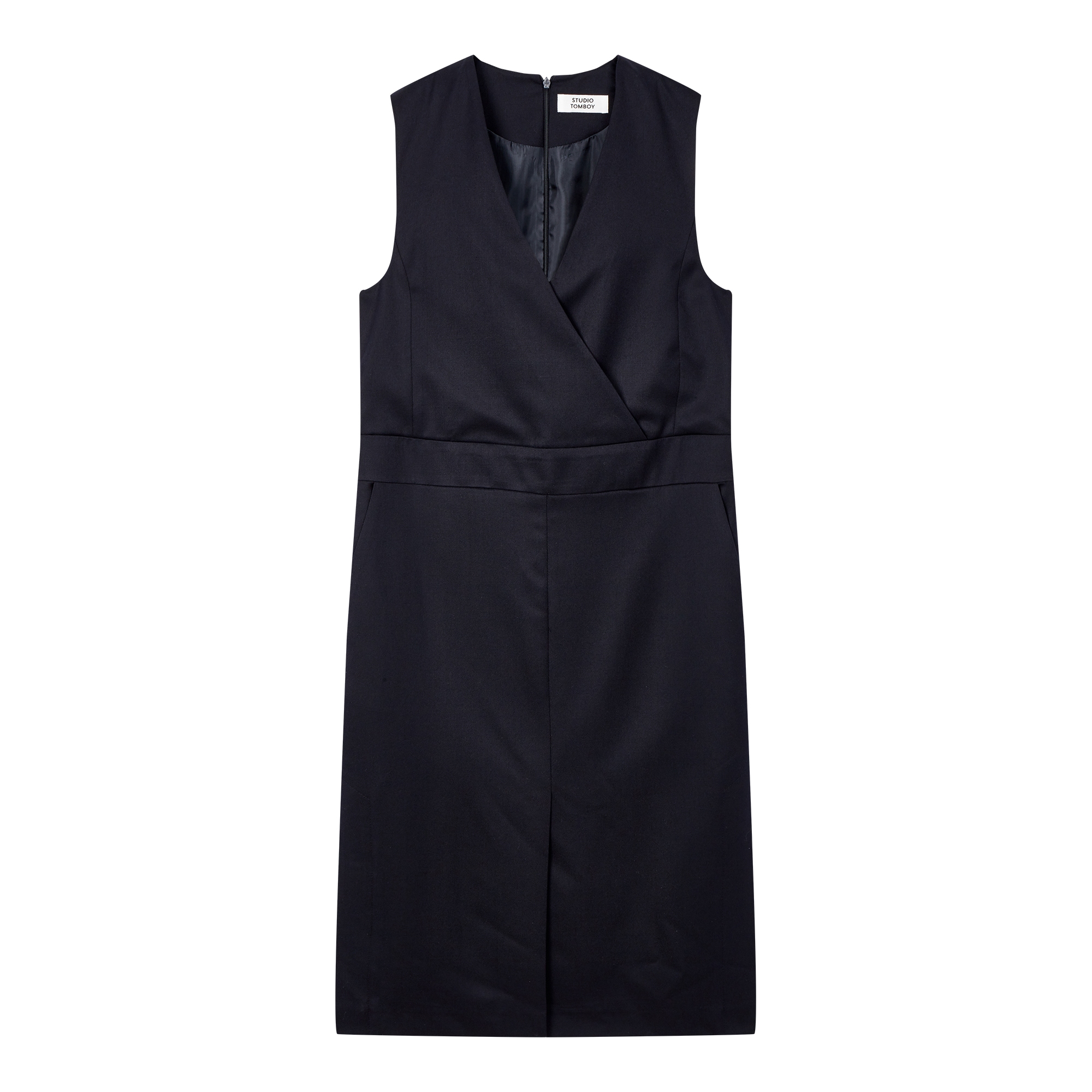 컬렉션 : 2017 Summer/Fall 디자인 포인트 : - 모던한 느낌의 네크라인 오버랩 슬리브리스 원피스- 스커트 중심 절개라인과 슬릿, 뒷 중심 절개로 라인을 슬림하게 표현- 밴드 느낌의 허리 절개로 하의를 길게 강조- 사이드 슬릿 포켓, 뒷 중심 지퍼 클로져로 탈착이 편안한 디자인 스타일링 추천 : 화이트 티셔츠 또는 블라우스와 플랫 슈즈를 연출, 캐주얼하고 트렌디한 이미지 연출 가능함