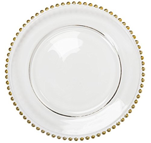 (charge it by danny)/Kitchen Dining/Tableware/DIRECT FROM USA/Charge It By Danny Beaded Round Glass Charger Plate, Gold Set of 4