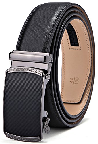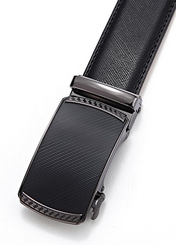 -. Feature : EXACT-FIT: Size-Customize design, easy to take off strap from bucke to cut the desired size and fit Exaxtly, just buy it bigger to avoid useless by too short, However, in case you feel inconvenient to make this easy step, please taking care of selecting the size. / EASY TO USE: No more holes, No trouble of size in between, the 32 unique sliding-positions in the ratchet of strap gives you a micro adjustment to adapt your waist variation, just easy and smooth; / DURABILITY: Strap-Genuine Leather, flexible but strong; Buckle - Zinc alloyed with high quality coating for scratch resistance; / GIFT IDEA: Very fashion design by decorated buckle matching with the strap, and it is packed in an elegant gift box to make sure you can present to your family or friends as a gift, even if you are not sure of the waist, just take a bigger one and it can be resized easily later on. / GUARANTEE: 100% guarantee available. Any reason makes you dissatisfy with this belt within the GUARANTEE PERIOD, let us know and we will make it right, Full Refund or a Free Replacement, whichever you prefer.