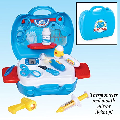 Studio : Collections Etc Publisher : Collections Etc Binding : Toy Product Description My First Medical Kit Toy Doctor Play Set W/ Carrying Case Description Kids will love playing with this 18-piece medical set that includes a handy case for storage and travel. Interactive set includes a syringe, tweezers, forehead thermometer, lighted mouth mirror, reflex hammer and more. Plastic case is approx. 9 1/4"L x 4 1/4"W x 8 1/2"H. Ages 3 . About Collections Etc's Toys Collections Etc. is committed to ensuring the safety of all our customers, both young and old. We assure you that every toy item sold in our catalog has been tested to U.S. Government quality and safety standards, and has been certified safe by independent third party safety testing labs.