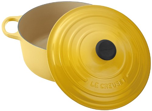 -. Binding : Kitchen -. Brand : Le Creuset -. EAN : 0701142717114 -. Feature : Soleil yellow enameled cast iron / Nonreactive sand-colored enamel interior requires no seasoning / Oversized handles provide even weight distribution and a secure grip / Ergonomic composite knobs are heat resistant to 500 degrees F / Built-in lid stabilizers provide a secure, no-slide fit -. Label : Le Creuset -. Manufacturer : Le Creuset -. Model : 23453 -. MPN : 23453 -. PackageQuantity : 1 -. PartNumber : 23453 -. ProductGroup : Kitchen -. ProductTypeName : KITCHEN -. Publisher : Le Creuset -. Studio : Le Creuset -. Title : Le Creuset Signature Soleil Yellow Enameled Cast Iron Round French Oven, 7.25 Quart -. UPC : 701142717114