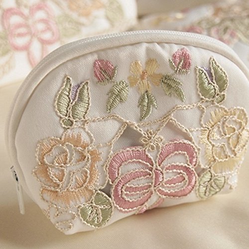-. Feature : お花の刺繍が上品でゴージャスな、ポーチです♪ / バッグの中が華やかになりますね! / ほんのりとクリーム系のオフホワイトカラー地に、優しい薔薇刺繍を施したシリーズです。 / 色糸のバランスを何度も調整し試作を重ね、 コード刺繍で立体感を持たせた上で手作業のカットを施していきました。 / サイズ:約6x10x3cm 素材:ポリエステル100% ※手洗いをお勧めします。