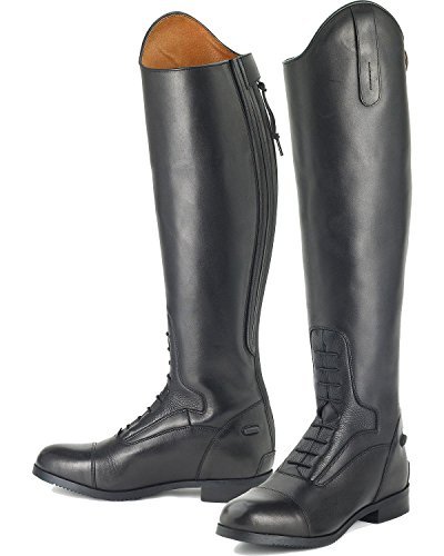Studio : English Riding Supply Publisher : English Riding Supply Binding : Apparel Product Description Crafted from very supple soft-touch premium cowhide with a cuff lining of genuine pigskin leather and moisture wicking lower shaft. The new Flex system pattern design affords the rider the ultimate in movement with full flexion of the ankle area immediately with first wearing. Added stretch panels on the inside of back zipper add supportive comfort and easy fitting at the calf. Twin side spur rests, classic toe cap styling, and elegant ripple sole add classic detailing at a remarkable price. 0