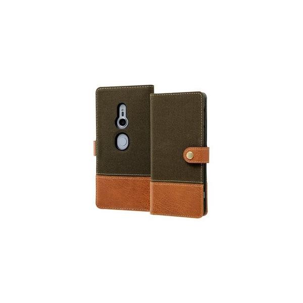 Xperia XZ2 (SO-03K SOV37) 用 手帳型ケース ファブリック 帆布 カーキ グリーン