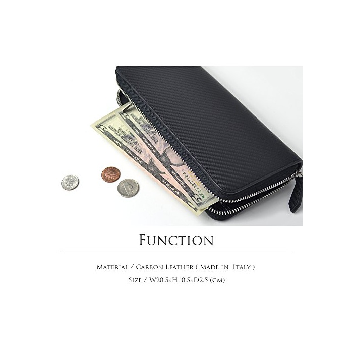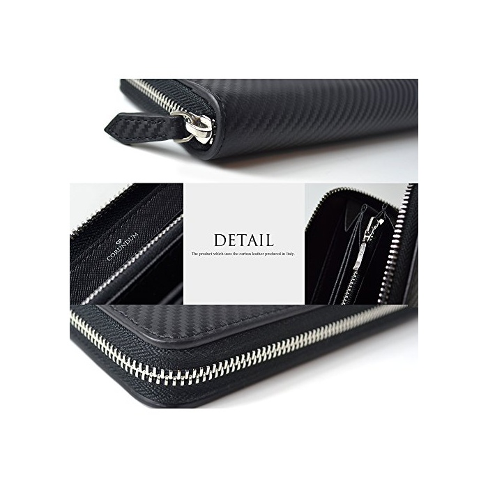 【CORUNDUM】 《고란다무》 이탈리아제 카본 레더 라운드 장지갑