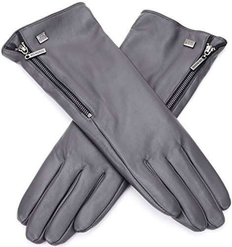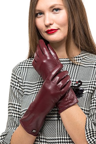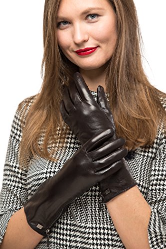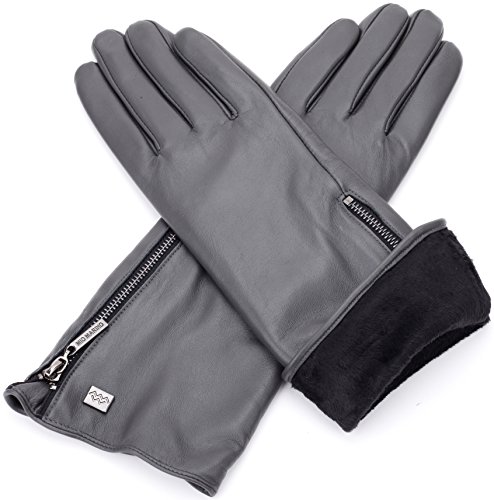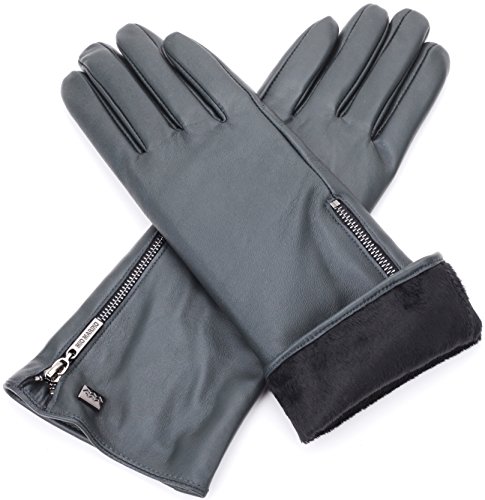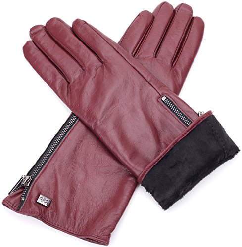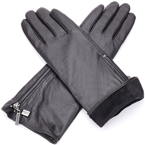 Quality Craftsmanship The Mio Marino long sleeve gloves is made of top grade, supple, Sheepskin leather. The fashion gloves will surround you with luxurious softness, caressing your hands in the ultimate embrace, for many years to come. Superior Warmth Experience toasty warmth regardless of the bitter cold outdoors. The Mio Marino fur lined ladies gloves is designed to beat the Brrrr head on. Touch Screen Friendly Now, you can use your devices easily. The driving gloves for women features touch screen which allows you to text, make phone calls and go about your business as usual while keeping your hands cozy warm. Fashion Forward Accentuate your look with glove for women the Mio Marino way. Womens work gloves is designed to complement your individual fashion 'look'. The Mio Marino womens leather gloves is a classic beauty. A true classic must have. The Marino Passion Our mission is to provide our customers with the most pleasing buying experience and to have you most satisfied with your Mio Marino womens winter gloves you selected. Therefore, we offer a 45-day return policy with an additional 180-day warranty. Shop risk-free and take advantage of our amazing exchange and return policy, when needed to exchange your work gloves for women. Presented with Care - Gift lovingly with our winter gloves for women. Mio Marino womens work gloves is nestled in designer packaging to wow your special loved one. 'Go Places'- a unique gifting experience. 0 |