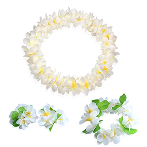 Hawaiian Necklace Leis Flower Garlands Hawaiian Colorful Flower Leis Jumbo Necklaces for Beach Theme Party Necklace/Bracelets/Headband set (White)