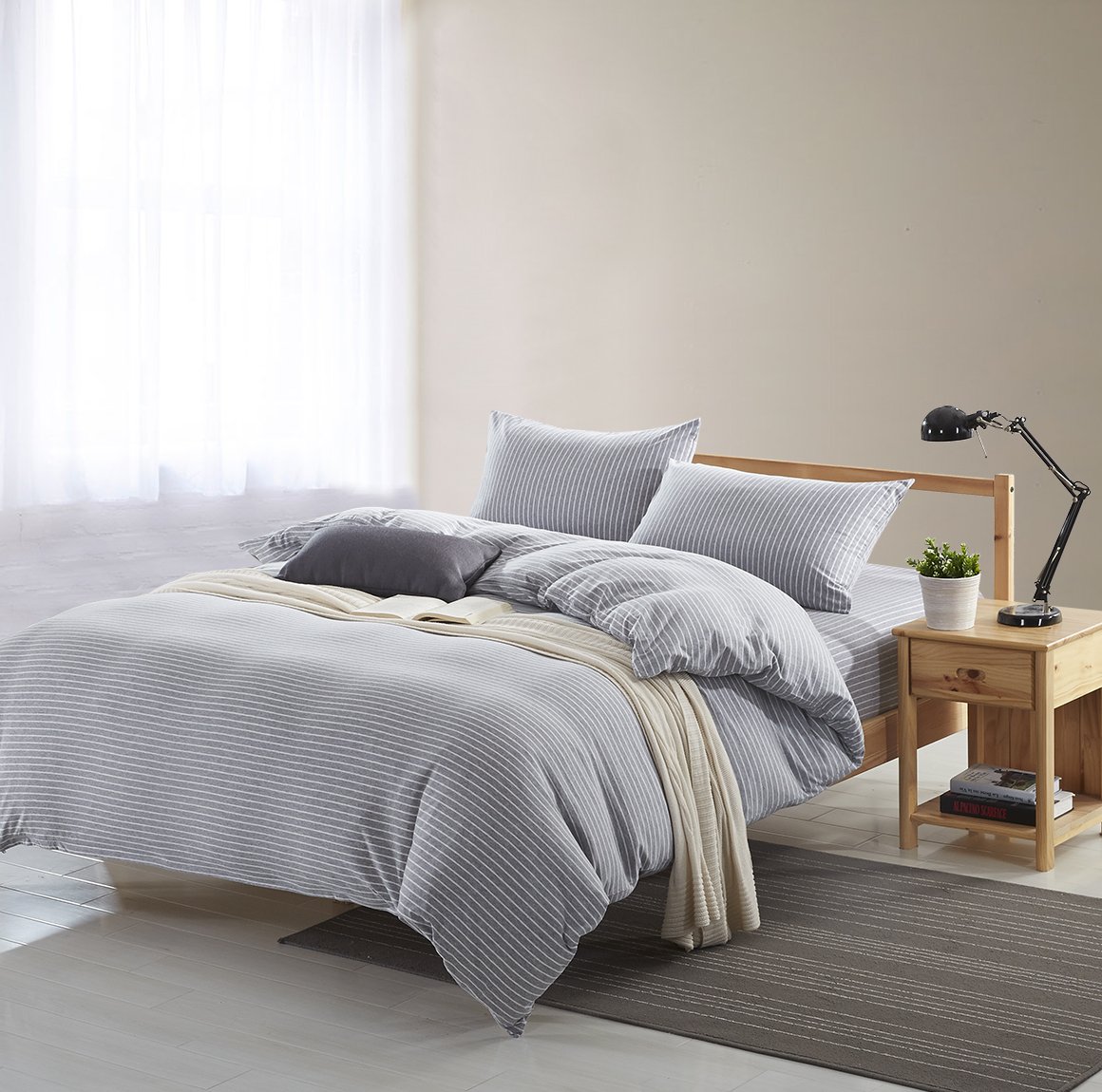 This is box sheet made from fabric of "knitted fabric" like T-shirt knit, like T-shirt. It is a chic and soft color tone, which contains thin white stripes in gray of heather. Many of ordinary sheets use textile fabrics, but since this is a knitted fabric, like a T-shirt, you can enjoy a soft, fluffy, very gentle touch. And because it is about 100% organic cotton, I think that people with weak skin can use it with confidence. Unlike common polyester blend knit, I think that it is also hard to become a pilling (By the way, a small pillar that can be knitted is a phenomenon often occurring in mixed blends such as cotton and polyester, cotton is hard to become a pilling ball ). I tried using knitted sheets for the first time this time, but the goodness of the knitted fabric is not only softness, it seems to feel good with the sheet of cloth in the cold season, there is no feeling that it seems to be sick, so the autumn / winter season I think that it is particularly good and because I suck sweat well, I thought that it was a perfect sleeping sheet all the year, perfect for spring and summer as well. Moreover, it is very good to fit perfectly without becoming wrinkle with stretchability unique to knit. I felt that this fitness is improving the comfort of the room. The point which I was interested in is that the rubber around the whole circumference was a bit tricky but I think that this depends on the usage environment such as individual differences and mattresses, It is an item I think is nothing. For people with weak skin, I think that you want to try it once, because it is a very good item so we put five stars, but especially if it is covered in the winter, bore fabrics will get itchy and irritated by the skin I think that it is the best. Without feeling irritating to the skin, it seems that you do not feel like it, so I think you can use it comfortably. By the way, I am reviewing the futon cover of the same material here as well, but when using the sheets and duvet cover at the same time, the whole body seemed to be soft and softly wrapped, I thought it was very good. First of all, try testing your sleep with this sheet and think that you can get a pretty nice sleepy if you like it if you like it. In addition, this review confirms the feeling of use etc. by offering free thing by request of product evaluation, and it is posted as a review. We would be pleased if you could refer to everyone who is considering purchasing.