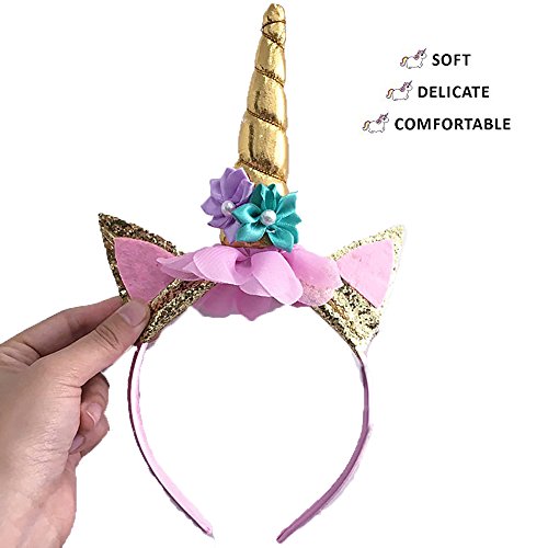 - Design: Lovely unicorn horn & glitter ears with flower decoration, which can add a lot of fun and laughter to funcy parties.