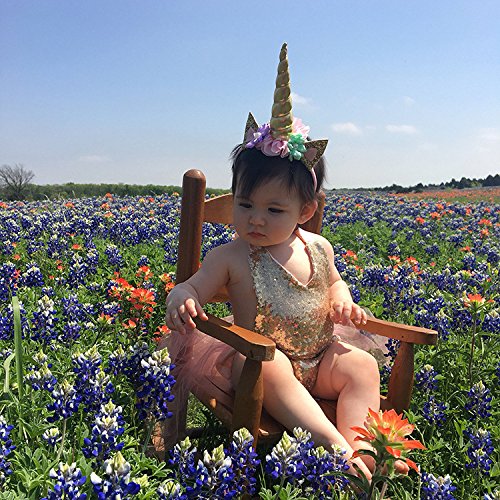 Lemoncy Unicorn Horn Headband Ears Photo Props Girl Birthday Outfit Squishy Cheeks Gold Glitter Unicorn Horn Headband Flowers Headwear Accessory...