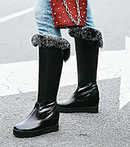 Binding : Apparel Product Description This pair of shoes is for women, girls, juniors and young ladies. You will look fashion and stylish when wearing them. The heels measures 3.1 inches. You will look slimmer and slender in their high wedged heel. Its platform is about 1 inch. So you will not feel too tired when walking with them. This pair of shoes features solid waterproof upper and pull on closure. You will look sweet in their round toe. The faux fur lined design will warm you all the winter. The sole is made of good rubber. You will feel comfortable in their soft bottom. They are of high quality and durable. 0