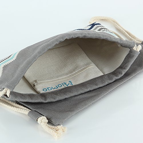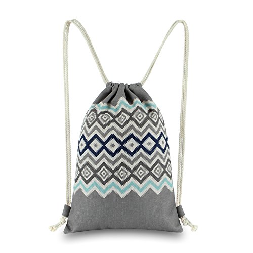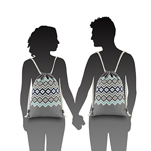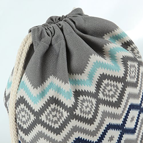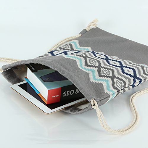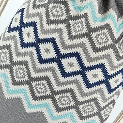 Miomao Drawstring Backpack Canvas Sackpack, Ikat Waves Bohemia Geometric Liftstyle Knapsack with Pockets, Sport Gym Shoulder Bags Yoga Travel Training Rucksack, 13 X 18 Inches