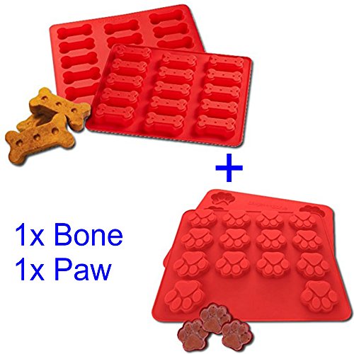 GYBest Food Grade Large Mats Trays, Dog Pets Bones Paws Silicone Baking Molds, Bake Dog Treats For Pets, Kids, Dog-lovers, Kitchen Tips 2 Pack