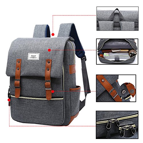 -. Title : Vintage Laptop Backpack, Kacat 15.6 Inches Canvas Backpack with Laptop Sleeve for School Travel Hiking
