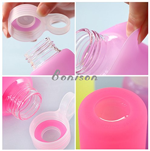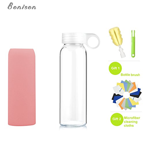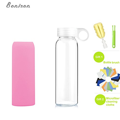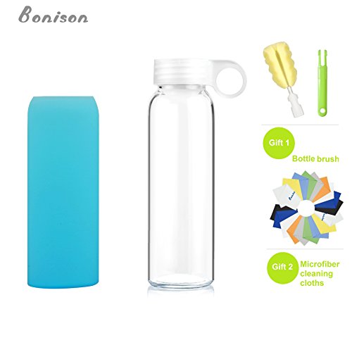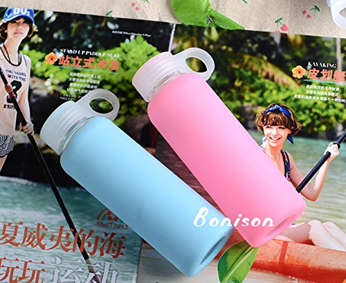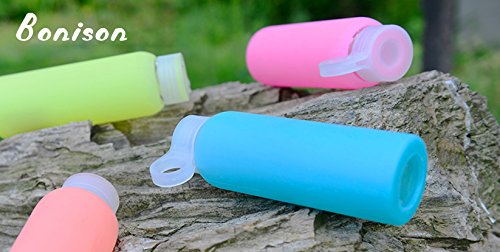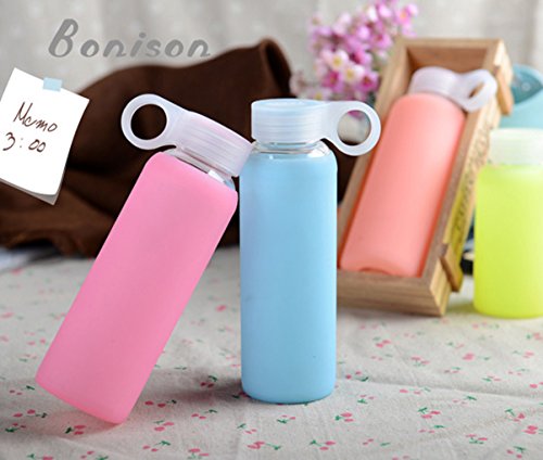 NOT YOUR ORDINARY GLASS LIQUID BOTTLE! BONISON Borosilicate Glass Water Bottle is known for its superior durability! BONISON Durable Glass Water Bottle is finely designed for any drink of your choice. For decades, people have preferred glass to any other material because they say it tastes better. You be the judge! Various color options: Blue, Peach, Pink, and Yellow. Get one for yourself and a different color for a gift.Eco-Friendly - BPA FREE - Food-Safe - Non-Permeable. ^Enjoy your drink without worrying about toxic chemicals.^