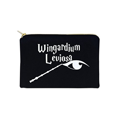 Wingardium Leviosa Parody 12 oz Cosmetic Makeup Cotton Canvas Bag - (Black Canvas)