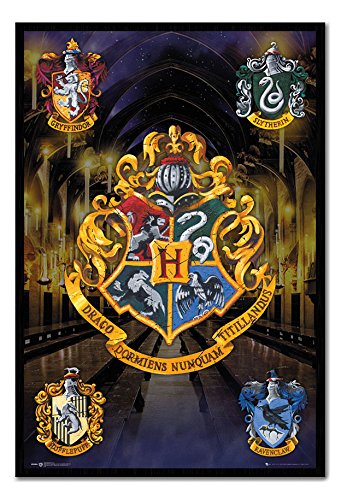 -. Title : Harry Potter Crests Poster Magnetic Notice Board Black Framed - 96.5 x 66 cms (Approx 38 x 26 inches)