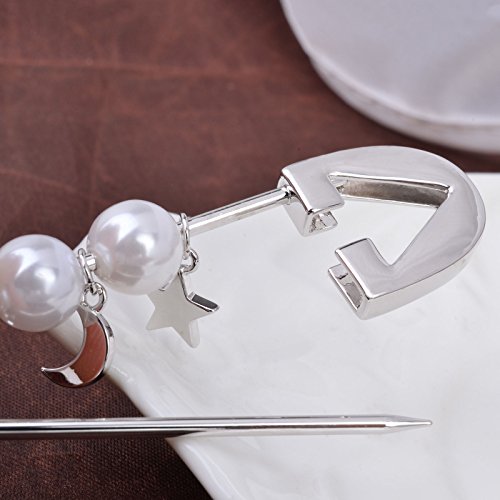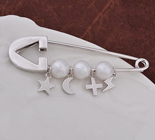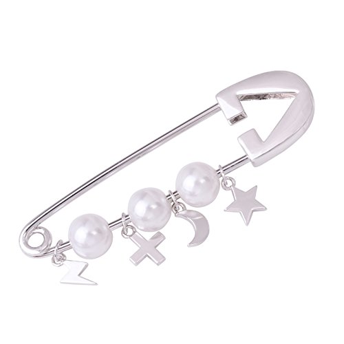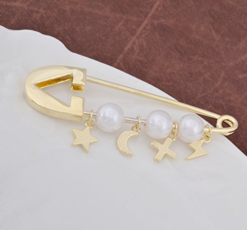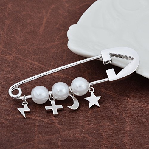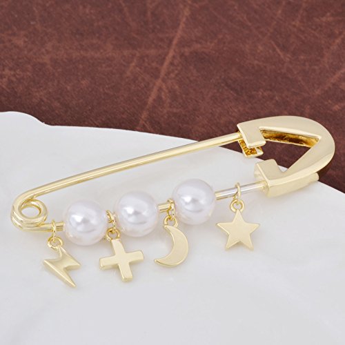 -. Title : OBONNIE Silver Gold Tone White Pearl Cross Star Lightning Moon Safety Pin Brooch Cardigan Hat Scarf Pins