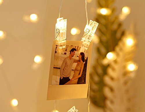 WYNK LED Photo Clip String Lights 20 Clips 17.5 Ft Battery Powered Fairy Twinkle Lights Bedroom Home Decor Wedding Party Lights for Hanging Photos, Cards and Artwork (Battery Powered, Warm White)