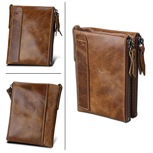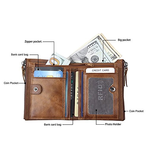 -. Feature : MADE FROM GENUINE PREMIUM LEATHER. This super slim card sleeve is made from premium genuine cow leather, very durable and nice. / VINTAGE STYLE AND MADE BY HAND. It is a vintage style wallet and hand made of distressed leather, different leather grain, it is the only one in the world, make you unique in your friends. / LIGHTWEIGHT BUT HUGE STORAGE CAPACITY. 2-3 card slots on each side where you can put 1-2 cards into each card slot, also with a middle compartment you can put notes, receipts or some folded cash. Great fit for business cards. Wallet Size: 4.2"x 3.4"x 0.2". / MINIMALIST WALLET DESIGNED FOR PRACTICALITY. The slim front pocket wallet is light in weight (1.2oz only) , perfect for a night out tucked away almost invisibly in your pocket and it won't look like that you are bring a brick when you are bringing all crowded street. / VARIOUSLY STYLE AND COLOR CHOICE. We offer several style and color for you to choose, no matter you are a elegant lady or a gentleman, you will find the right color to fit your style. Whether you wear jeans, shorts, or slacks, it fits perfectly in front or back pocket without being noticed.