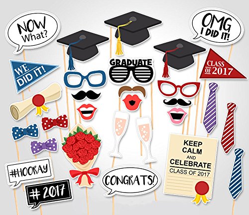 [USA-SALES] Graduation Party Photo Booth Props, Graduation Party Decorations, Attached to the Sticks, NO DIY REQUIRED, by Usa-Sales Seller
