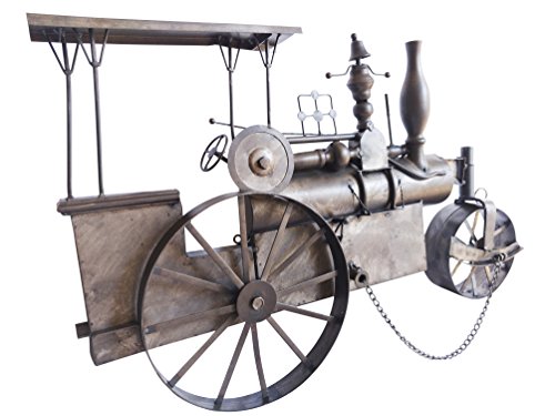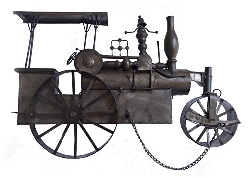 Metal Steam Traction Engine Wall Art by Victus Home with Chain and Antique Design Detail, 26 Inches Long by 17 Inches High, Classic Antique Black Brown Color