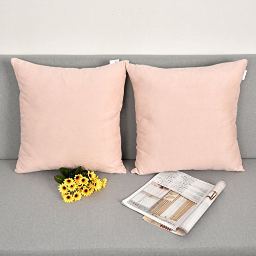 2 Pcs Velvet Deluxe Square Decorative Throw Pillow Covers for Teen Girl's Room by Natus Weaver , 26 x 26 , Baby Pink