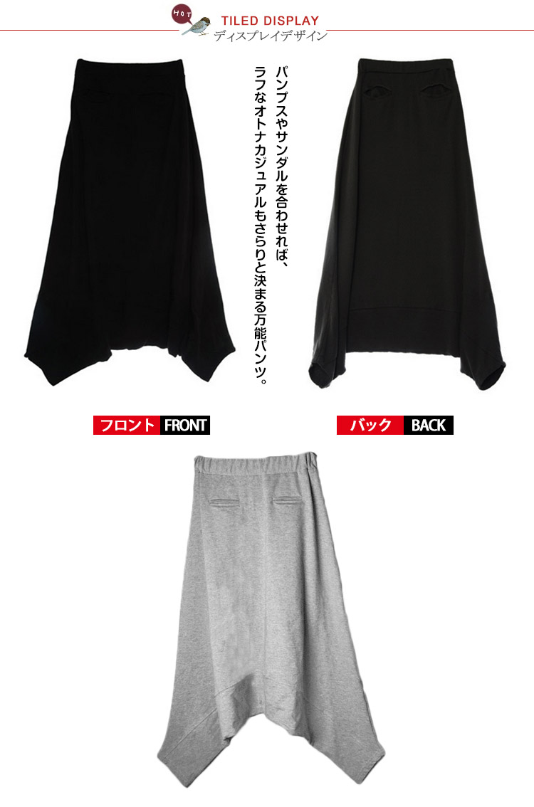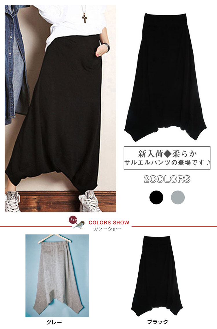 | 新入荷◆柔らかサルエルパンツの登場です♪通常のサルエルパンツよりも深く股上を取っているので、一見スカートっぽく見えちゃう女の子らしいカジュアルデザインです♪柔らかで、着心地のいい素材ですので、ホームウェアにもお勧めです♪パンプスやサンダルを合わせれば、ラフなオトナカジュアルもさらりと決まる万能パンツ。 | |