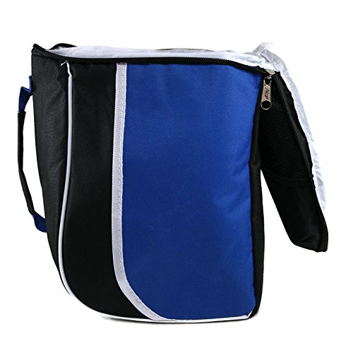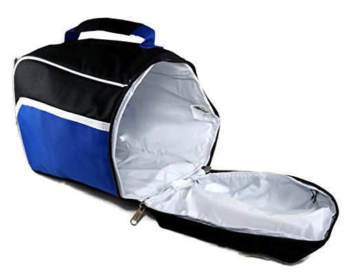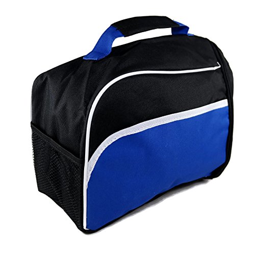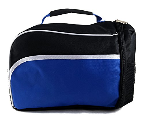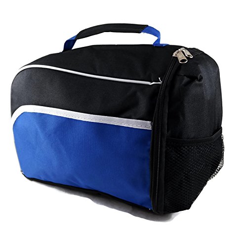 Hit Side Opening Zipper Insulated Lunch Tote Bag with Mesh Side Pouches (Blue Black)