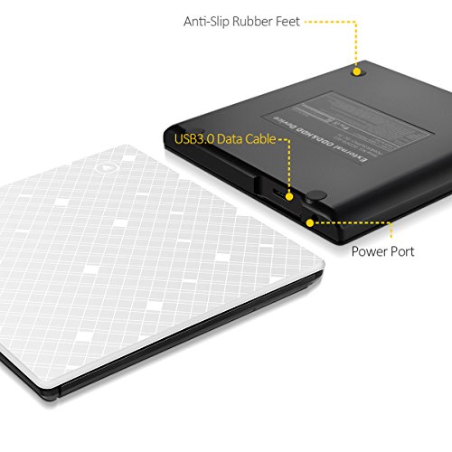 YAHEY External DVD Drive USB 3.0 CD Drive for mac External Disk Drive Player with Touch Control Eject Button Compatible with all desktop computers and laptops(white)