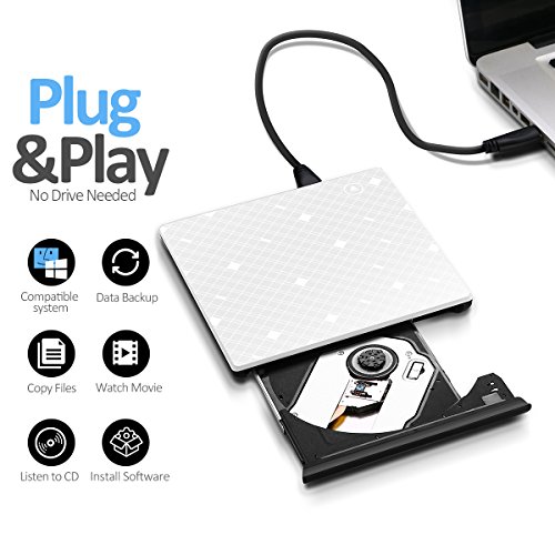 - UNIVERSAL COMPATIBILITY :Suitable for Windows XP/2003/Wind8/Vista/ 7/8.1/10, Linux, Mac 10 0S system etc. Compatible with all PC and laptops with USB interface. Support compact disc:DVD-ROM, CD-ROM, DVD-R, DVD+R, DVD-RW, CD-R etc.